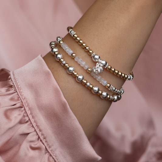 Luxury Lotus bracelet stack with 14k gold filled beads and Moonstone gemstone