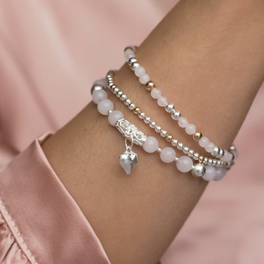 Luxury romantic Rose Quartz gemstone bracelet stack with 14k gold filled beads
