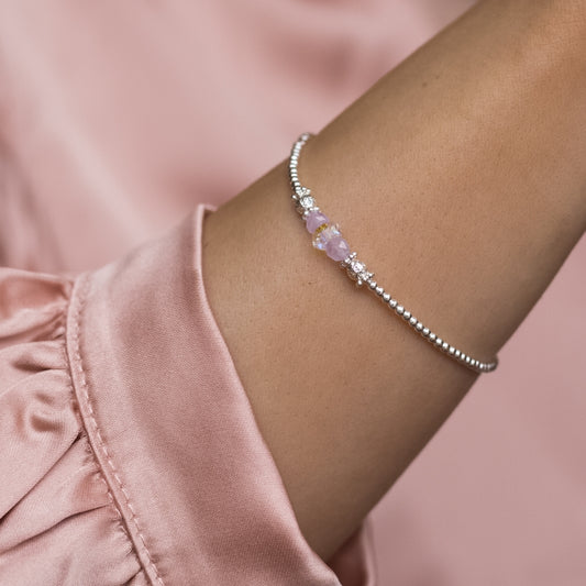 Luxury 925 sterling silver bracelet stack with Flower charm and Amethyst gemstone