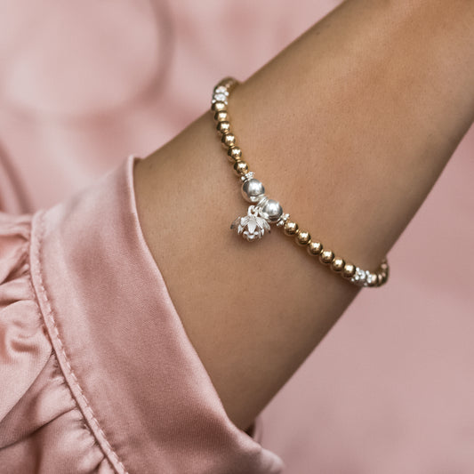 Elegant Lotus flower silver and 14k gold filled stacking bracelet