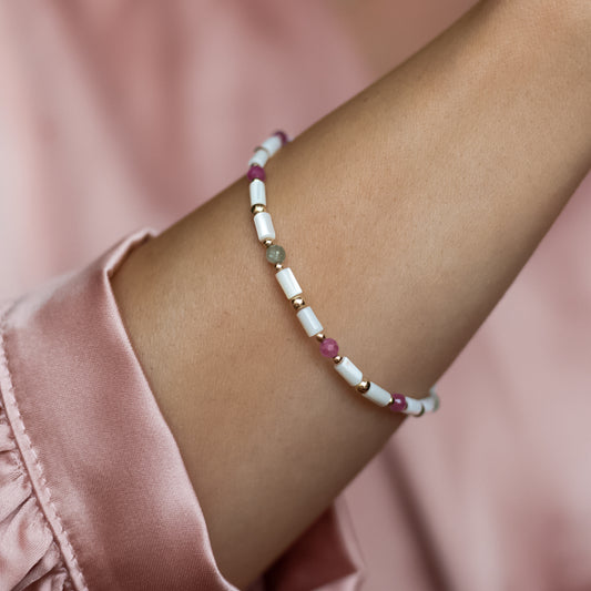Candy stacking bracelet with Tourmaline and Mother of Pearl