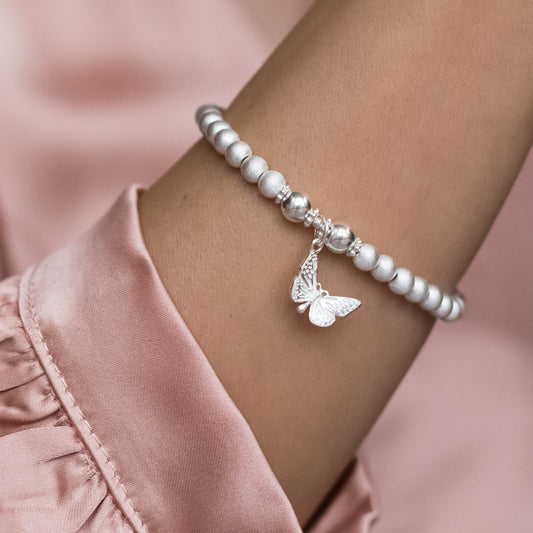 Romantic Butterfly bracelet with 925 sterling silver satin beads