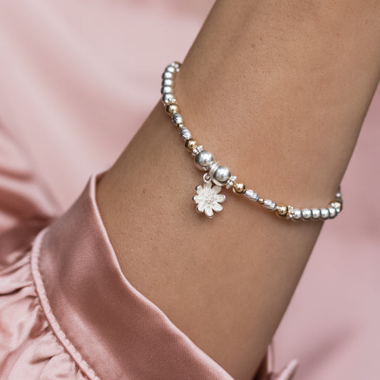 Beautiful Flower silver stacking bracelet with 14k gold filled beads