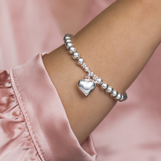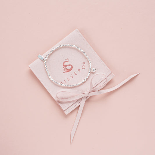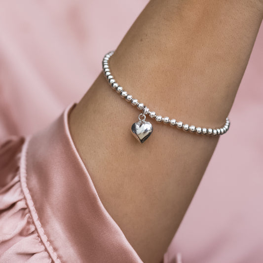 Minimalist silver stacking bracelet with adorable tiny Heart charm