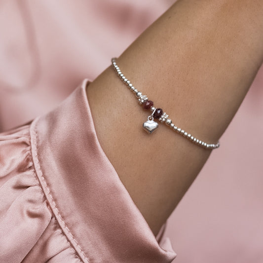 Adorable minimalist Garnet stacking bracelet with tiny heart charm