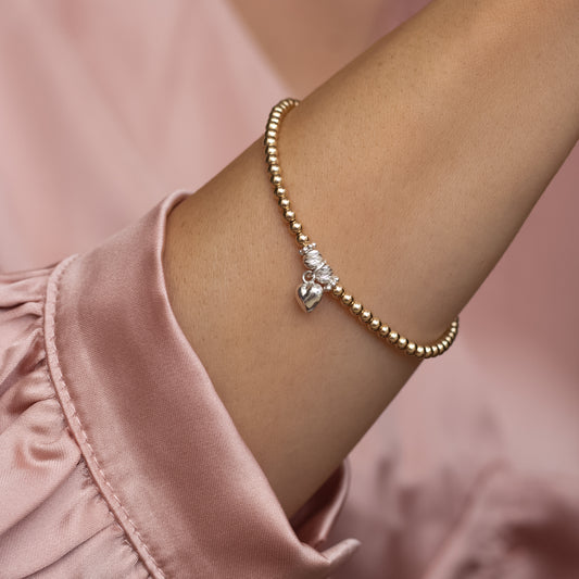 Dazzling silver and 14k gold filled bracelet with Cubic Zirconia heart charm