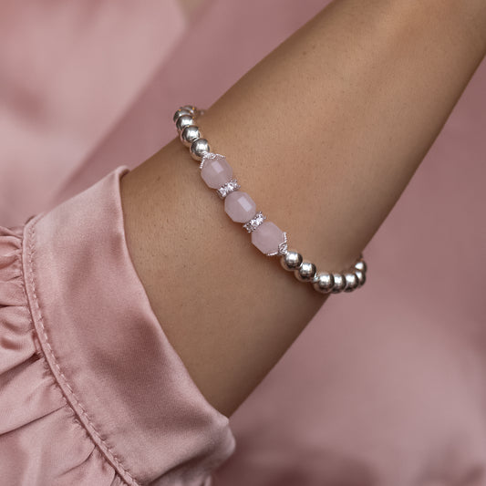 Elegantly romantic silver stacking bracelet with Rose Quartz gemstone