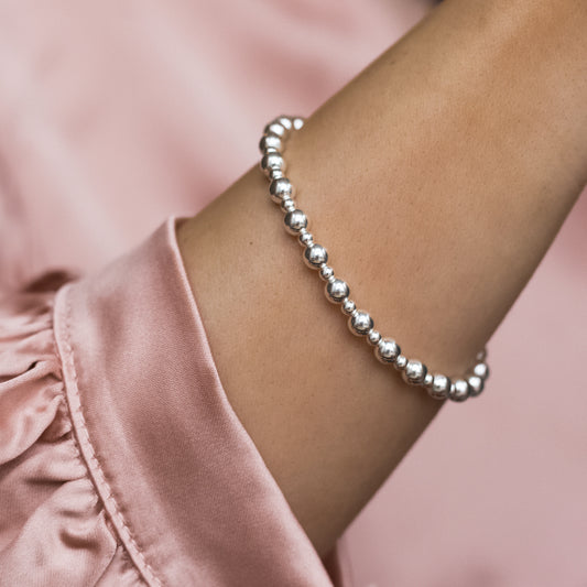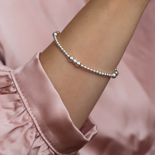 Fashionable stacking silver ball bracelet with multicut beads