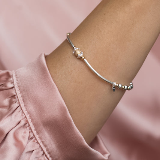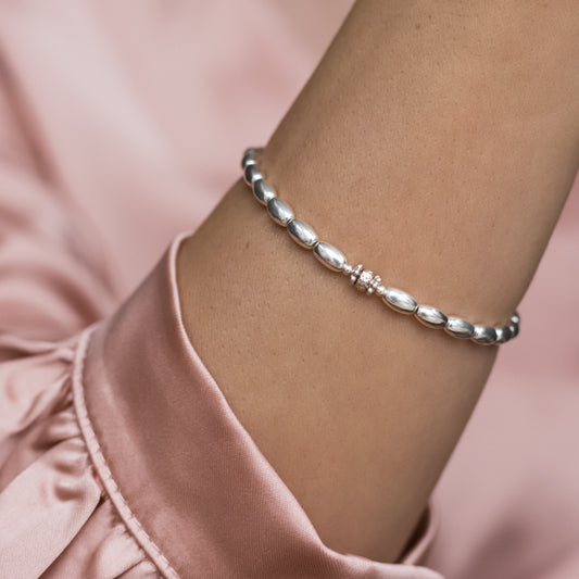 Elegant silver stacking bracelet with dazzling multicut silver bead