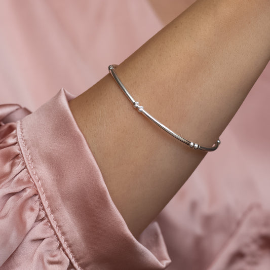 Minimalist tube sterling silver stacking bracelet with dazzling beads