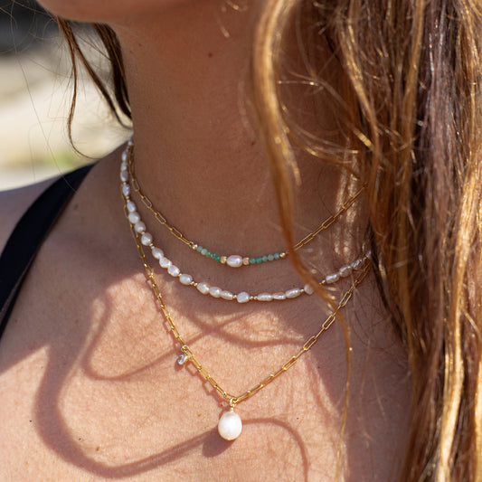 Luxury 14k gold filled link choker necklace with Emerald and Freshwater Pearl