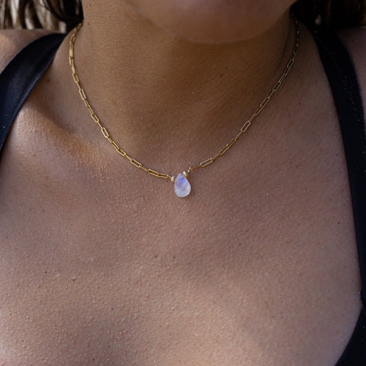 Luxurious 14k gold filled link necklace with Moonstone gemstone