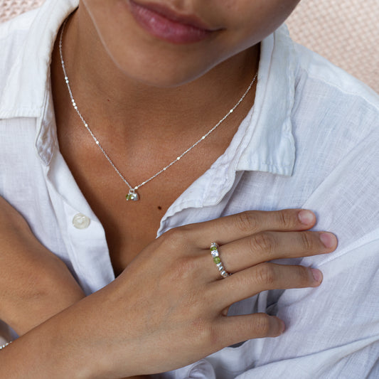 Peridot stacking ring with Cubic Zirconia stone