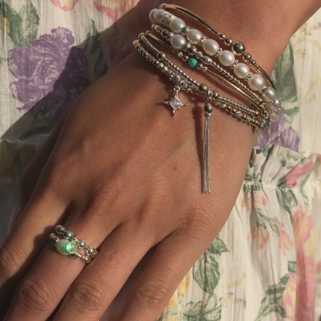 Embrace the protective energy of the North Star with the Aster Stacking Bracelet. Featuring a radiant cubic zirconia stone, this bracelet symbolizes guidance and safety on your journey. Let it serve as your talisman, reminding you that you are always supported and surrounded by light. A perfect addition to your Protection collection.