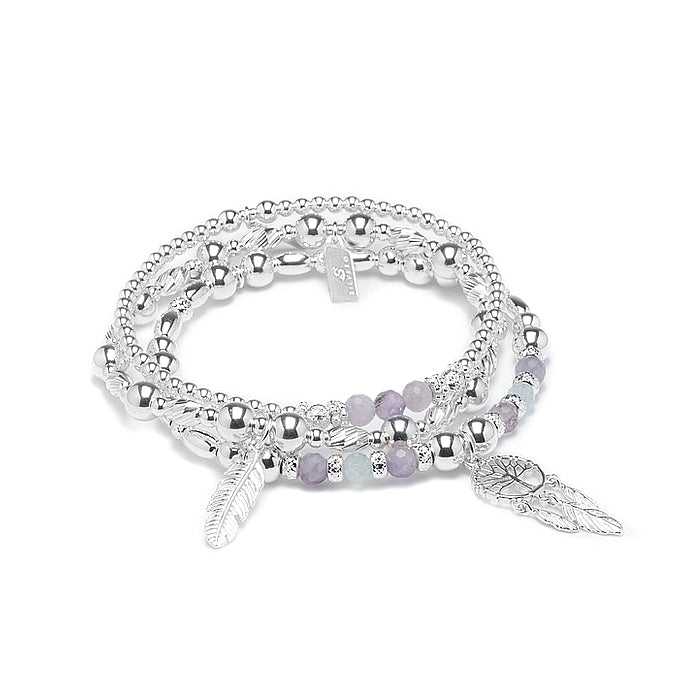 Boho Dreamcatcher bracelet stack with Aquamarine and Amethyst gemstone