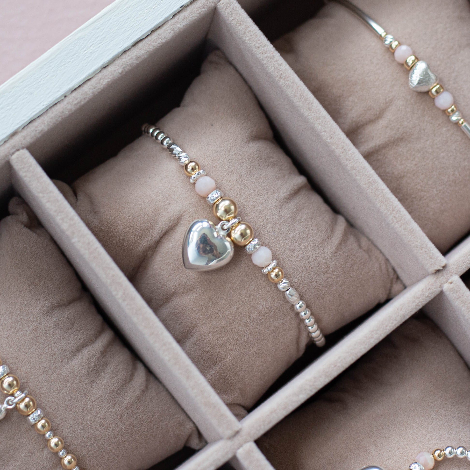 Chunky Heart bracelet with Pink Opals and 14-karat gold