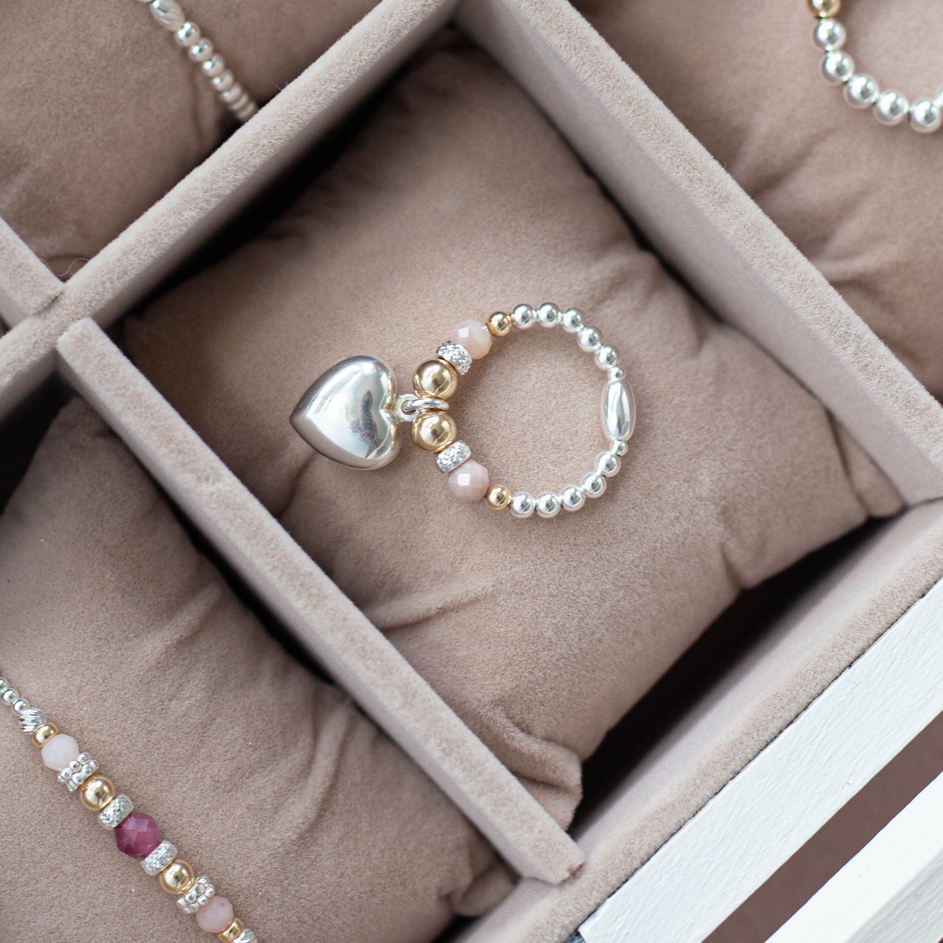 Chunky Heart stacking ring with Pink Opal and 14-karat gold