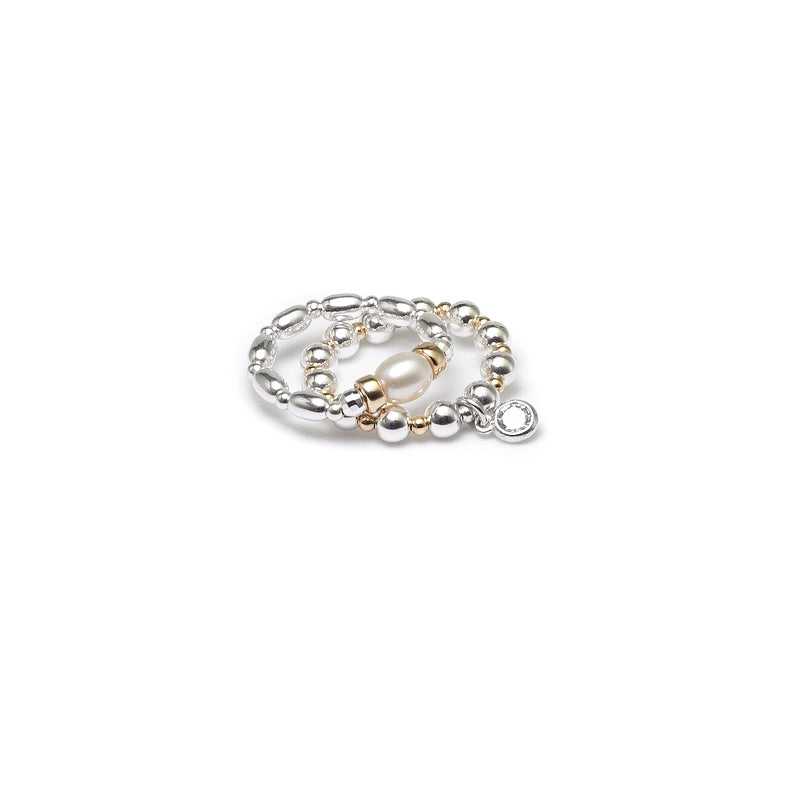 Elegant white Freshwater pearl ring stack with Cubic Zirconia charm