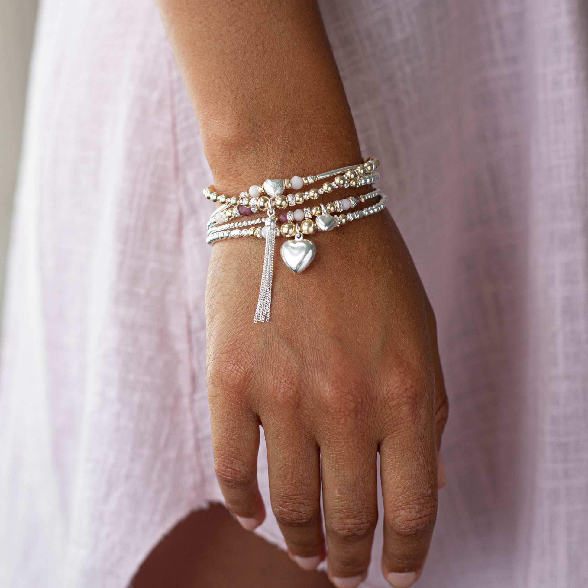 Infused with the powerful energy of a harmonious blend of Rose Quartz, Pink Opal, Pink Tourmaline, Kunzite, Carnelian, Garnet, Rhodonite, and Clear Quartz, the Love Collection is designed to open your heart and experience unconditional love. These stones nurture emotional healing and self-love, creating a talisman to embrace love in all its forms.