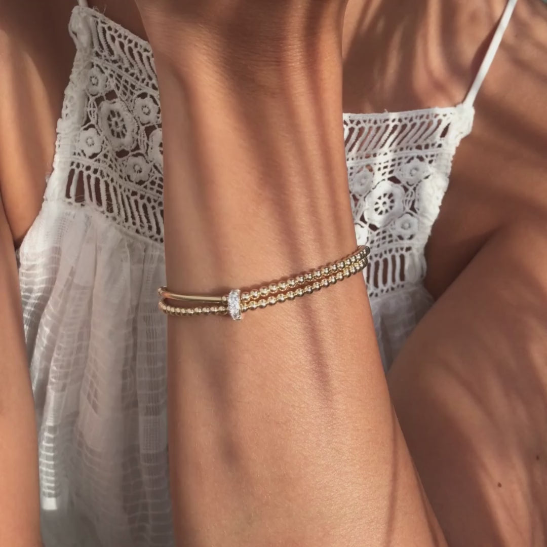 Embrace the energy of abundance with this double bracelet, a powerful reminder of your worth and the prosperity that surrounds you. The 14k gold filled material symbolizes wealth and success, serving as a daily affirmation that abundance is your birthright.