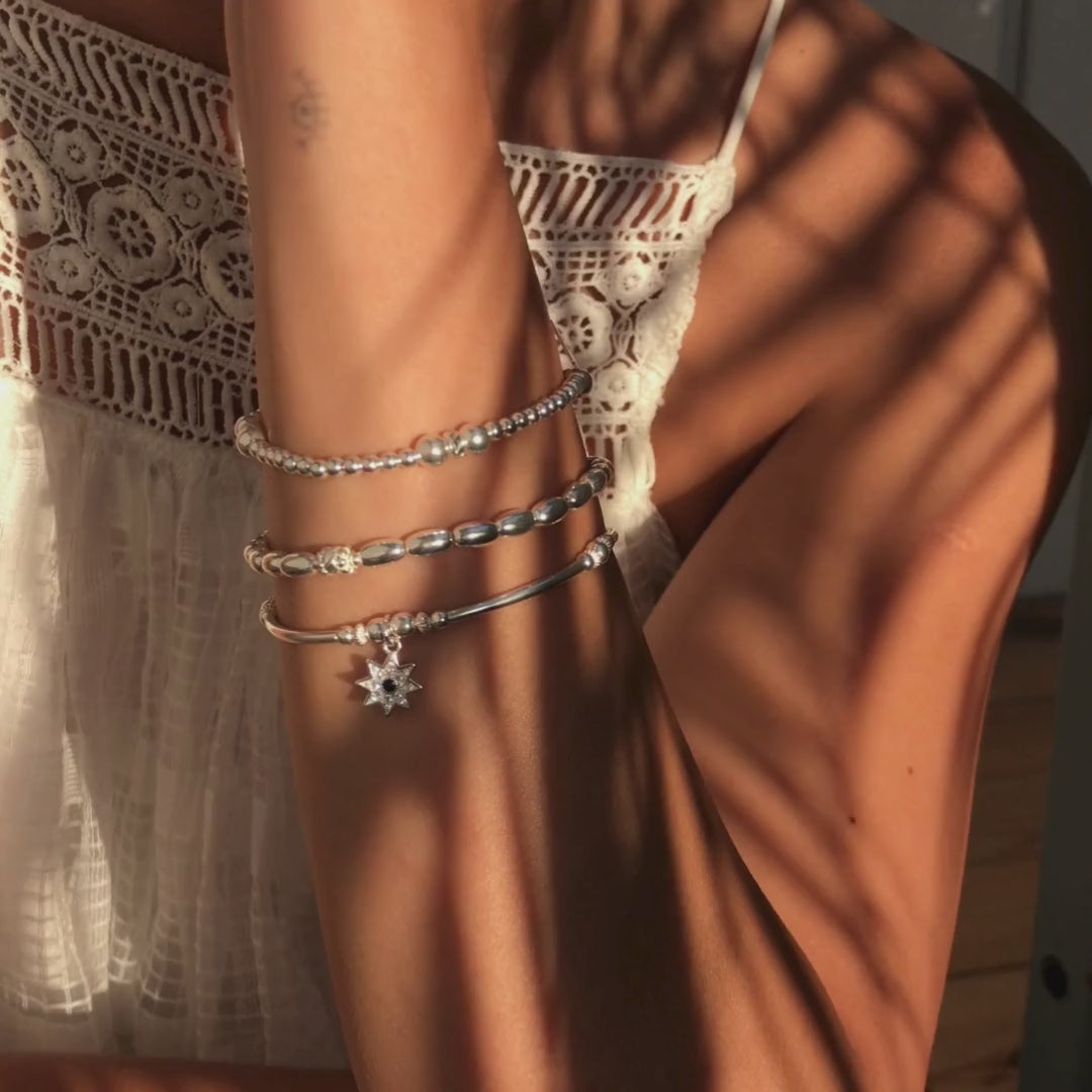 Elegant silver stacking bracelet with dazzling multicut silver bead