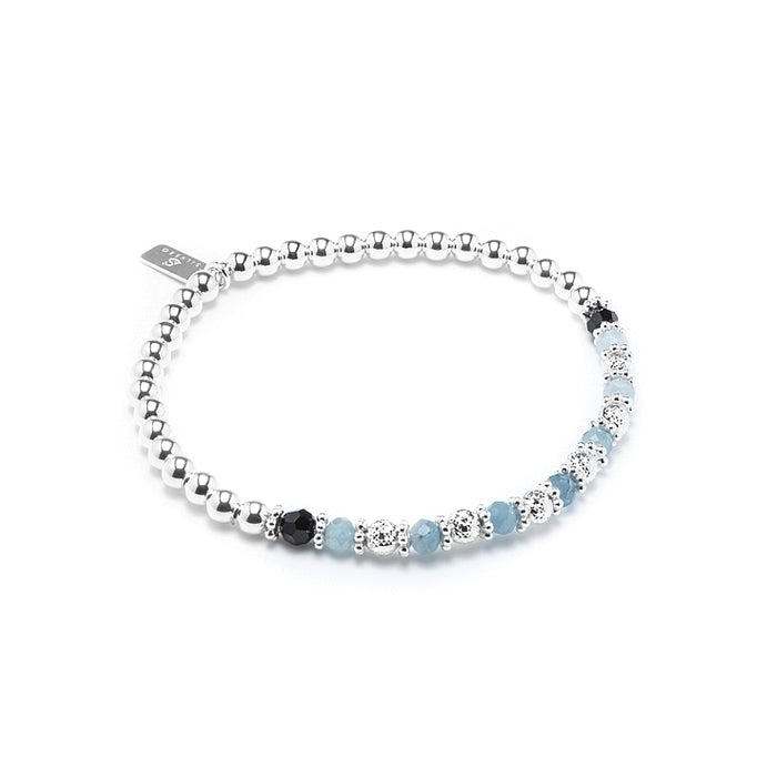 Luxury 925 sterling silver elastic/stretch stacking bracelet with Aquamarine gemstone