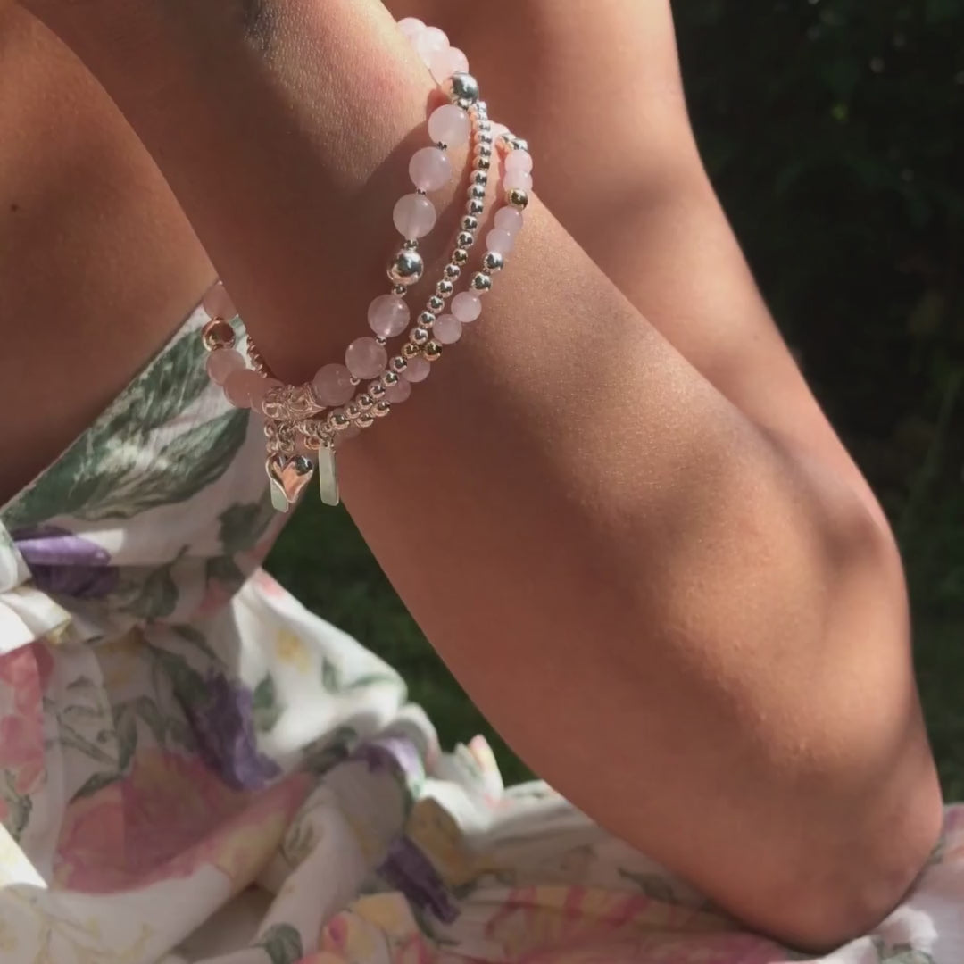 Introducing our exquisite Luxury Romantic Rose Quartz Gemstone Bracelet Stack, a true embodiment of love and elegance. This bracelet stack features genuine Rose Quartz gemstones, carefully selected for their delicate pink hues and profound connection to matters of the heart.