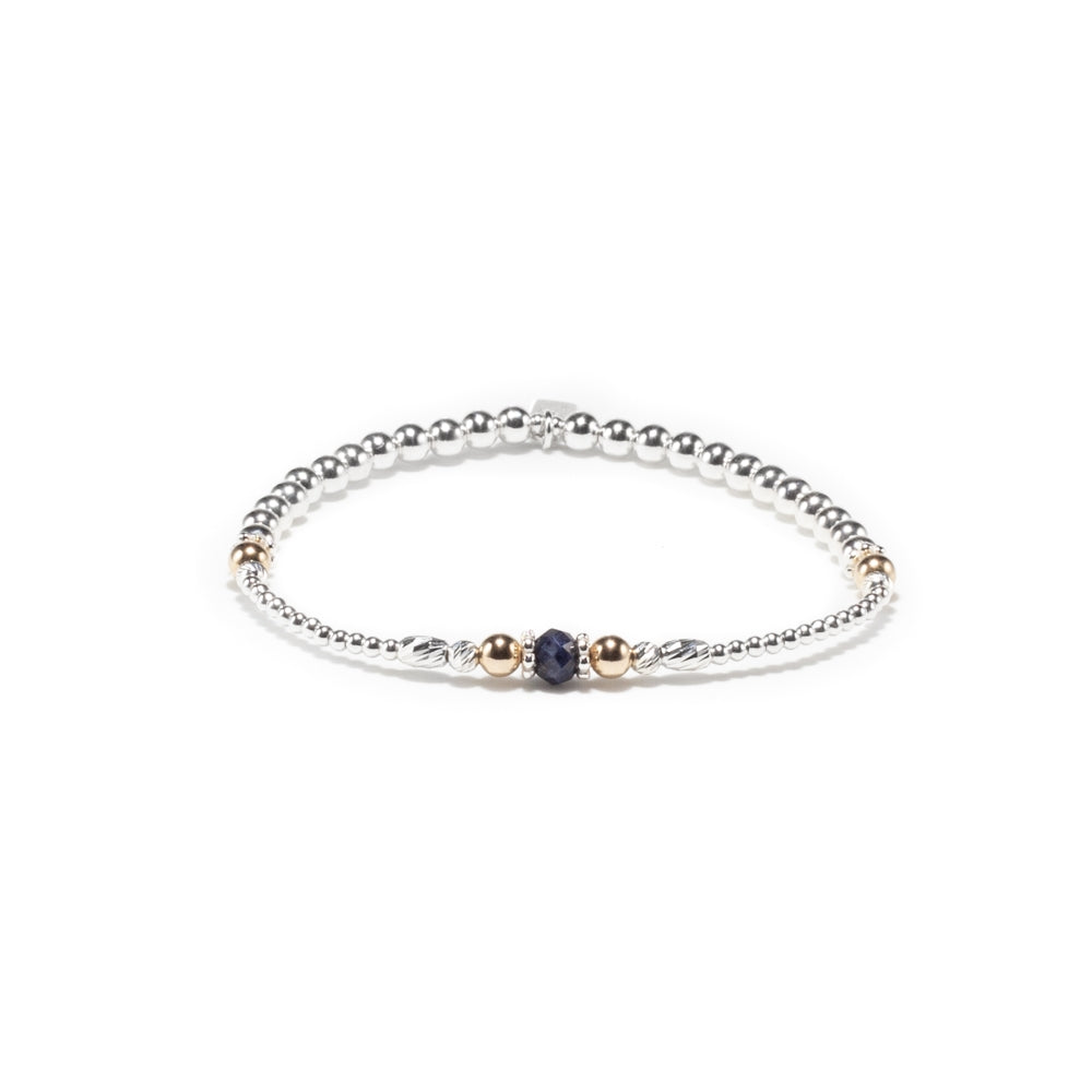 This luxurious stacking bracelet features a stunning sapphire at its center, surrounded by elegant 14k gold beads. The deep blue hue of the sapphire symbolizes wisdom and royalty, reminding you that you are deserving of all the abundance life has to offer. Stack it with other bracelets or wear it alone to let its beauty shine, and carry with you the confidence that abundance is your birthright.