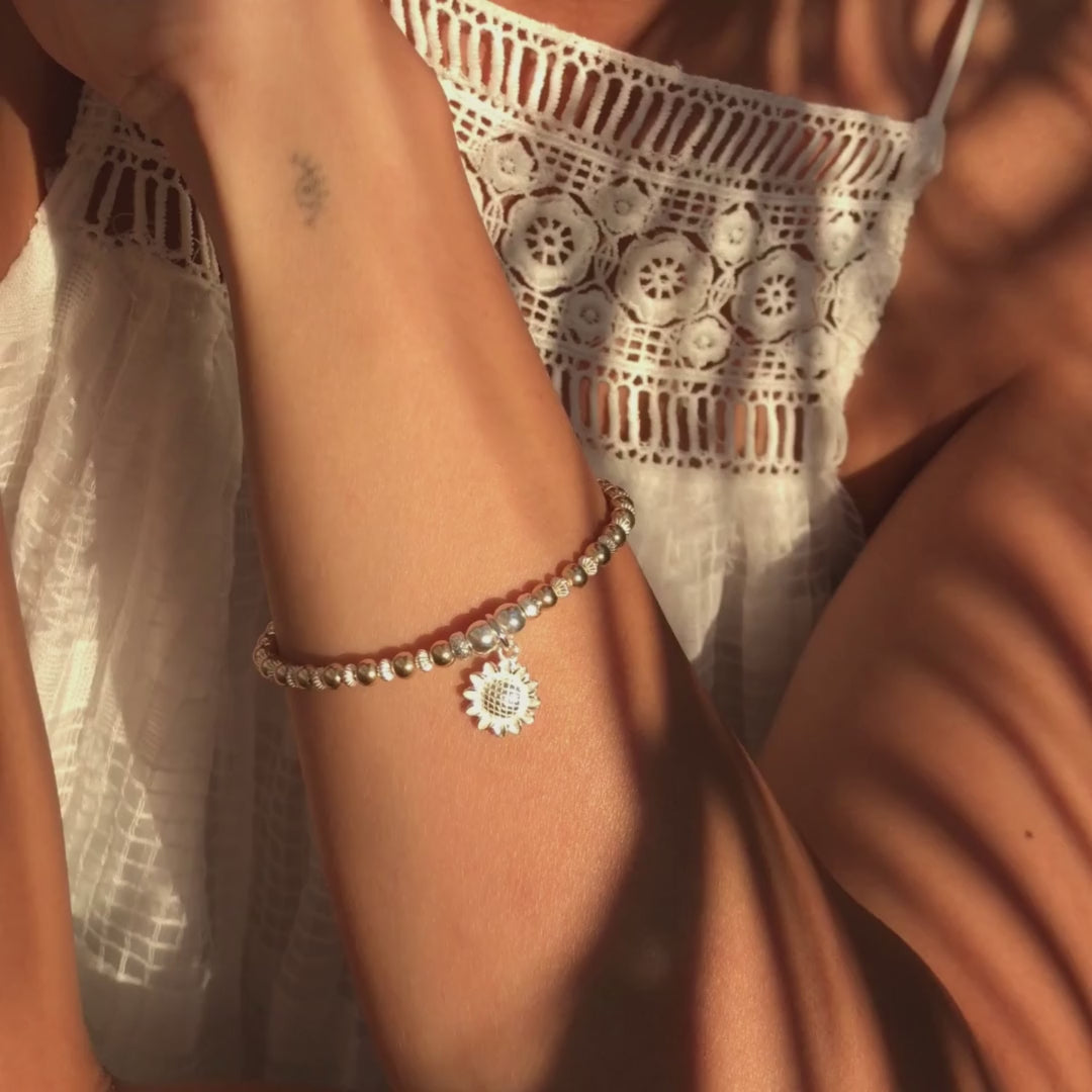 Adorable Sunflower 925 sterling silver and 14k gold filled stacking bracelet
