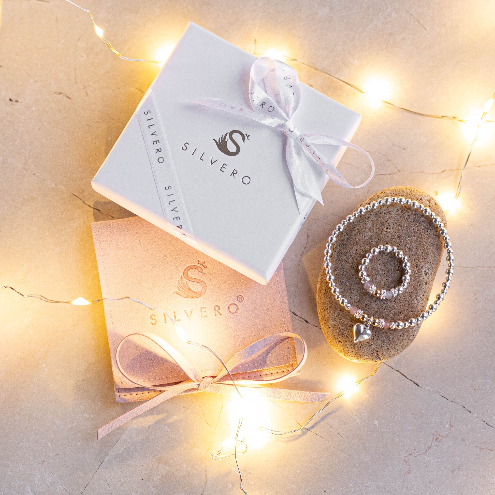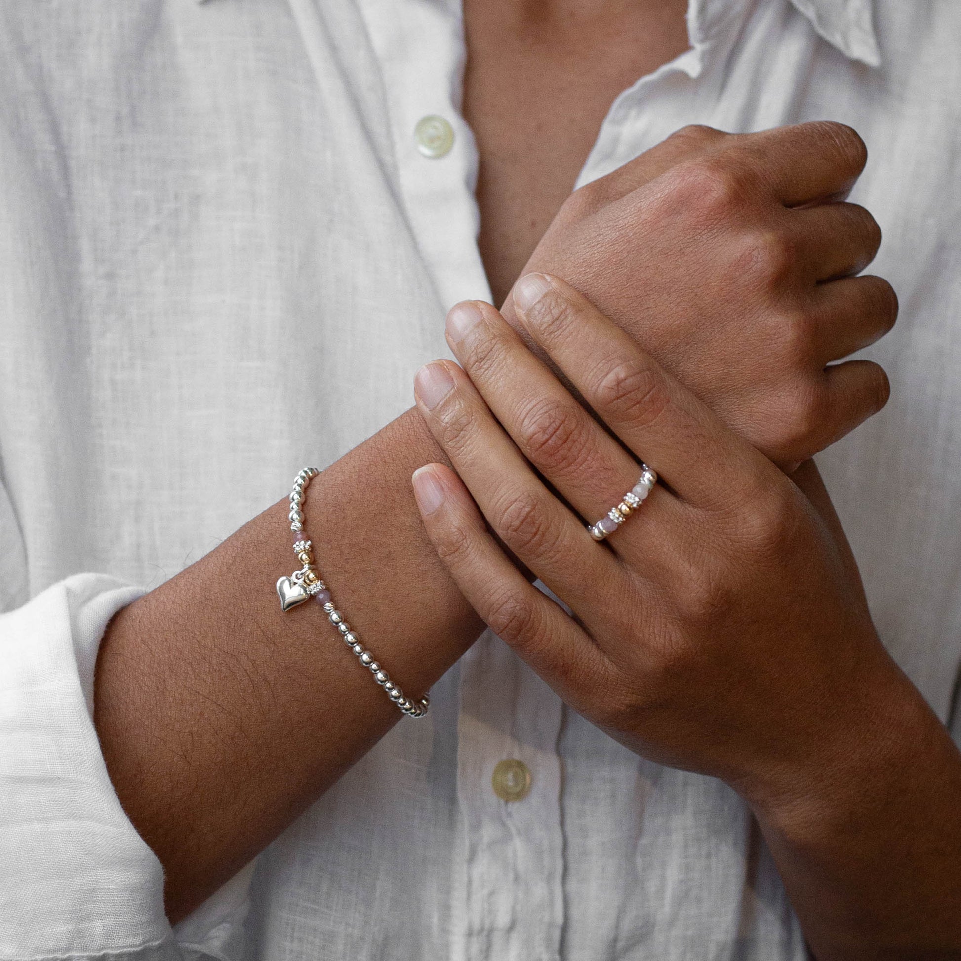 Express love and gratitude this holiday season with this enchanting limited-edition set. Featuring a bracelet and ring crafted with gold-filled beads, the tender energy of Madagascar Rose Quartz, and a sweet heart charm, this set is a luxurious reminder of love and connection. Choose between mix metals or sterling silver only, and enjoy the festive touch of free gift box packaging - a perfect way to show someone how much they mean to you this Christmas.