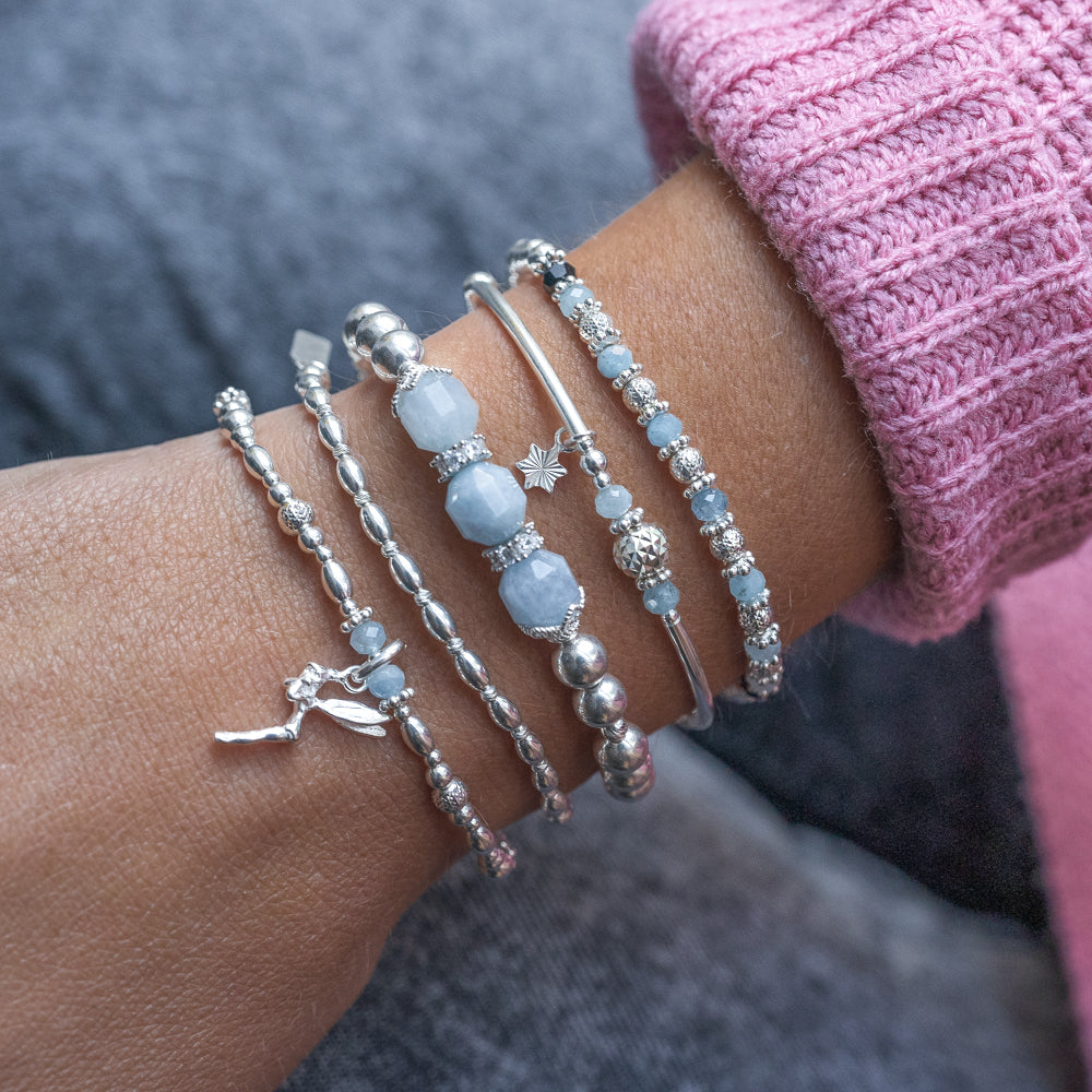 Magical Fairy silver bracelet stack with 100% natural Aquamarine gemstone