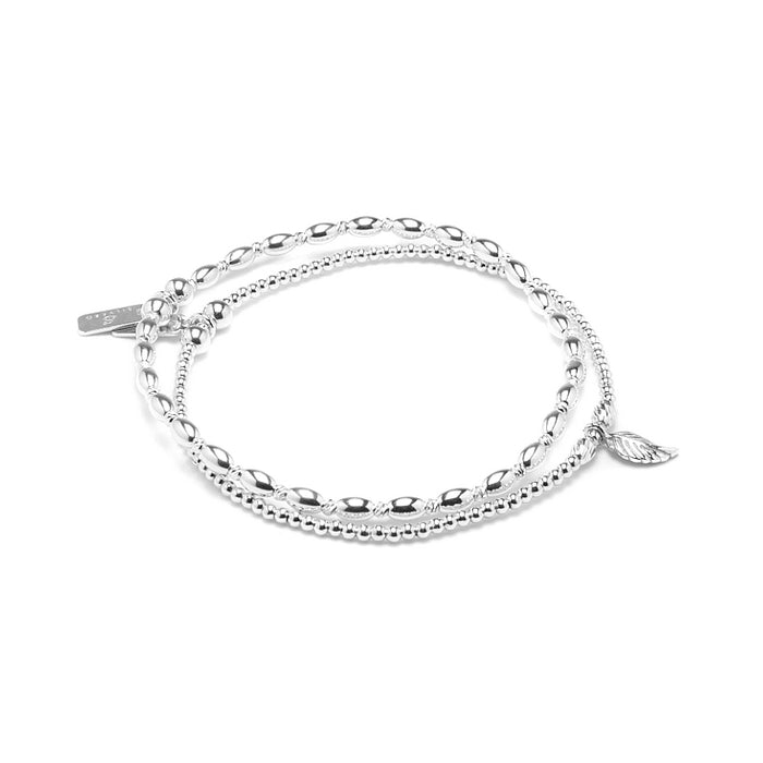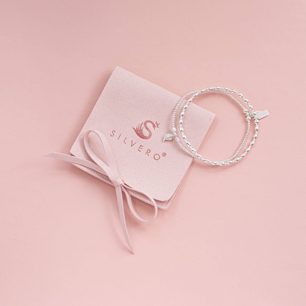 This elegant bracelet stack features two delicate 925 sterling silver bracelets, each adorned with a tiny leaf charm. Symbolizing growth and renewal, this minimalist design serves as a gentle reminder to embrace the beauty in every moment and cultivate happiness in your life. Let this charming stack inspire you to celebrate the simple joys that surround you.