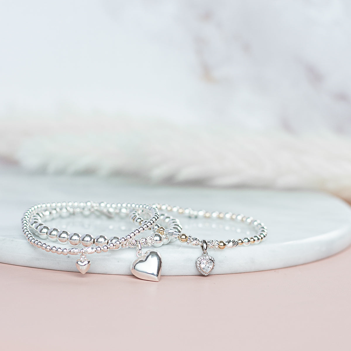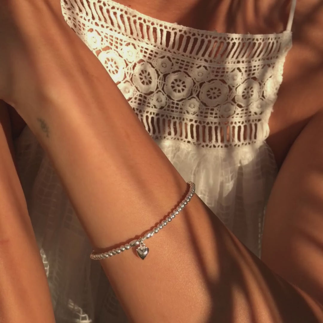 Minimalist silver stacking bracelet with adorable tiny Heart charm