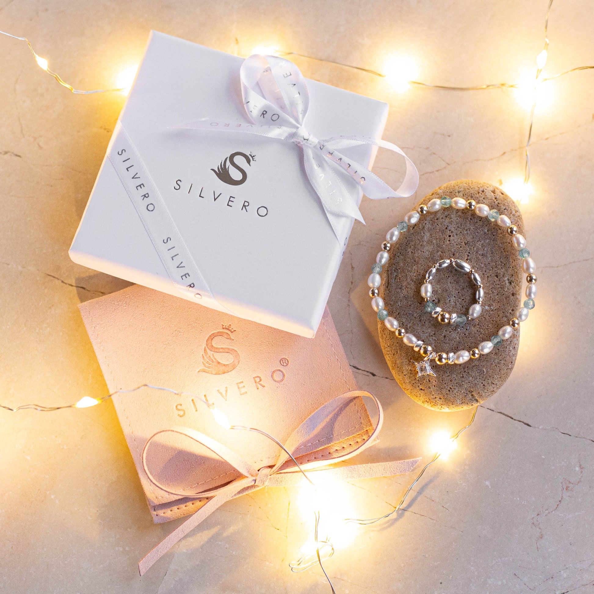 Let the magic of the holidays guide you with this exclusive Christmas set. Featuring a bracelet and ring crafted with luxurious gold-filled beads, luminous pearls, and the vibrant energy of Apatite, this set is a beacon of hope and clarity. Known for enhancing focus, motivation, and manifestation, Apatite inspires personal growth and aligns you with your purpose. The elegant North Star charm symbolizes guidance and serves as a reminder to follow your inner light and stay on your path. Available in mix metals or sterling silver only, each set comes with free gift box packaging, making it a perfect and meaningful gift for the holiday season.