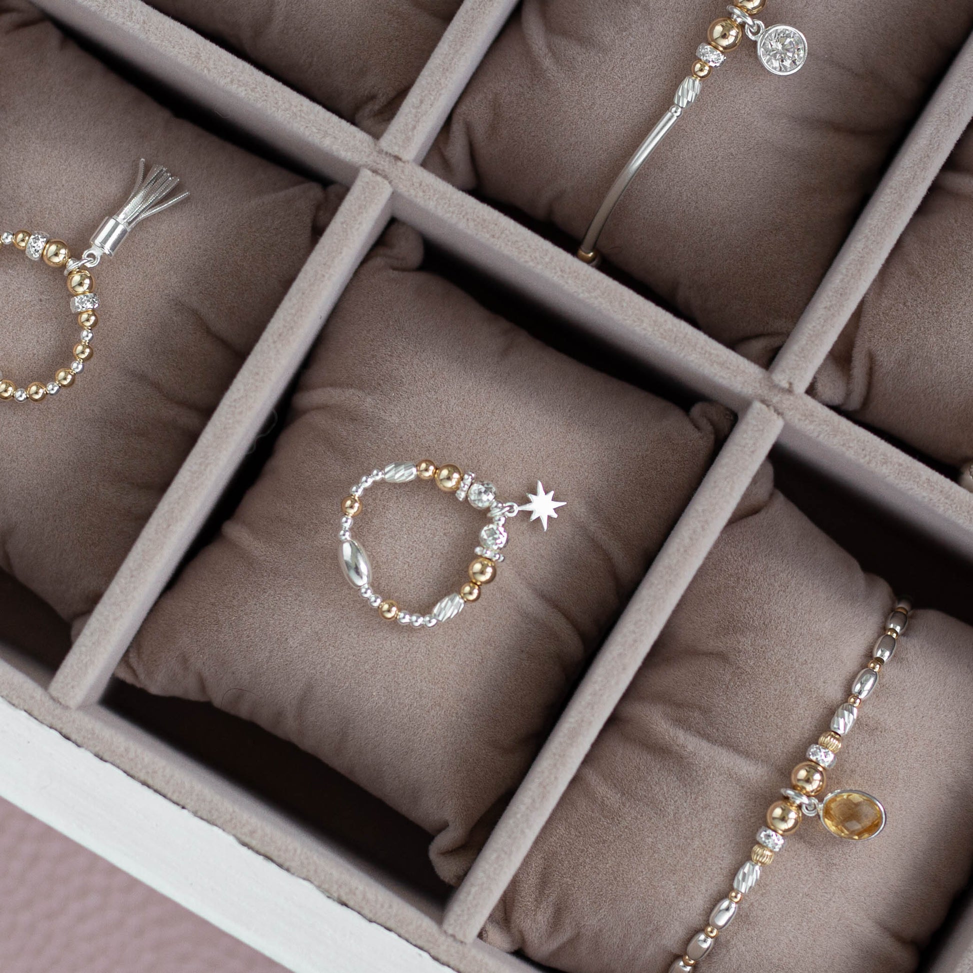 This elegant stacking ring, crafted in silver and 14-karat gold, draws inspiration from the guiding light of the North Star, symbolizing direction, stability, and protection. Designed as a luxurious addition to our Protection collection, it serves as a reminder to trust your intuition and embrace the guidance available to you. Perfect for layering, this ring brings a touch of radiance and intention to your journey, safeguarding your path as you navigate life’s adventures.