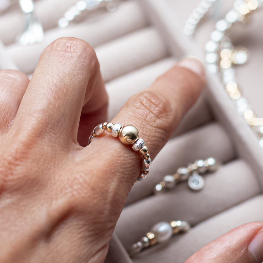 This exquisite stacking ring, crafted from silver and gold, serves as a timeless symbol of transition and abundant memories. The design reflects the duality of life—embracing change while celebrating cherished moments. Wear this ring to honor your journey, reminding you of the endless possibilities that each new season brings.